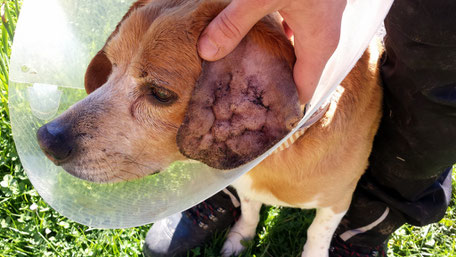 versuchten eine Operation zu umgehen, doch leider blieb dem armen Jungen diese nicht erspart, da sich das Ohr trotz Behandlung immer mehr mit Blut füllte.. armer Buddy!